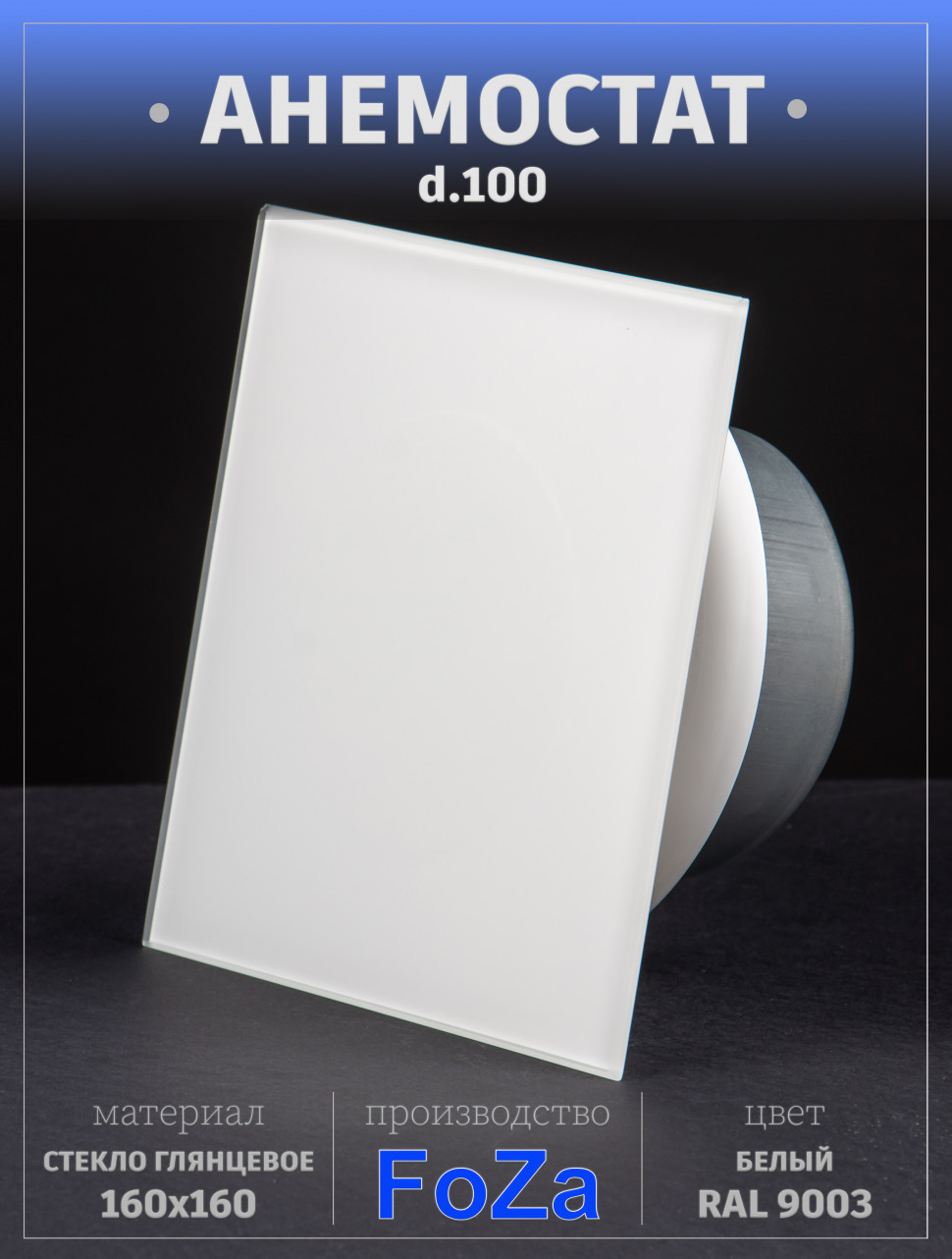 Анемостат со стеклянной внешней частью FOZA D 100 мм. Глянцевое стекло 160х160 мм. Цвет Белый. RAL 9003. Квадрат в интернет-магазине «ВЕНТФОМ». Заказать с доставкой! Тел.: +7 (925) 201-33-89.