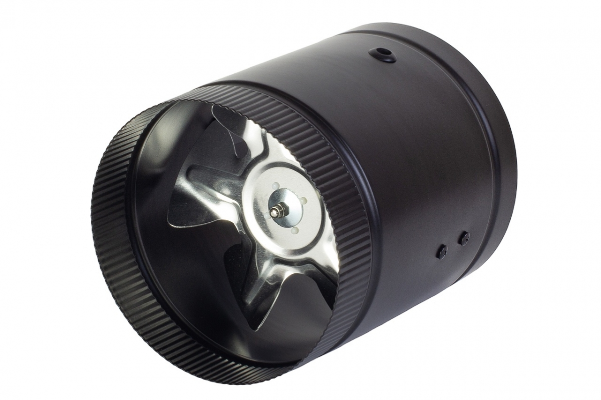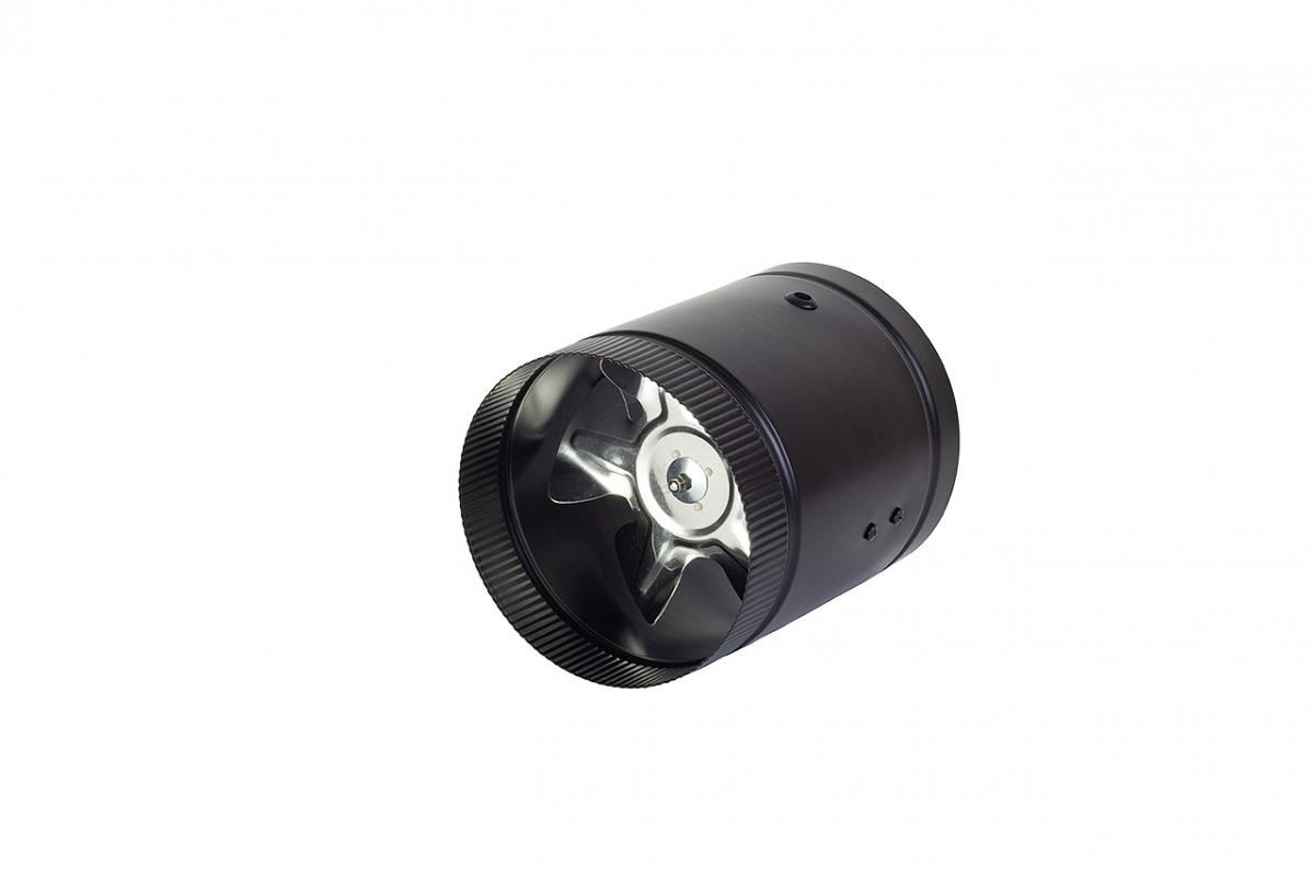 Конструкция: Корпус и крыльчатки вентиляторов выполнены из алюминиевого сплава. Рифленый на обоих торцах корпус позволяет упростить монтаж в уже существующий вентиляционный канал.