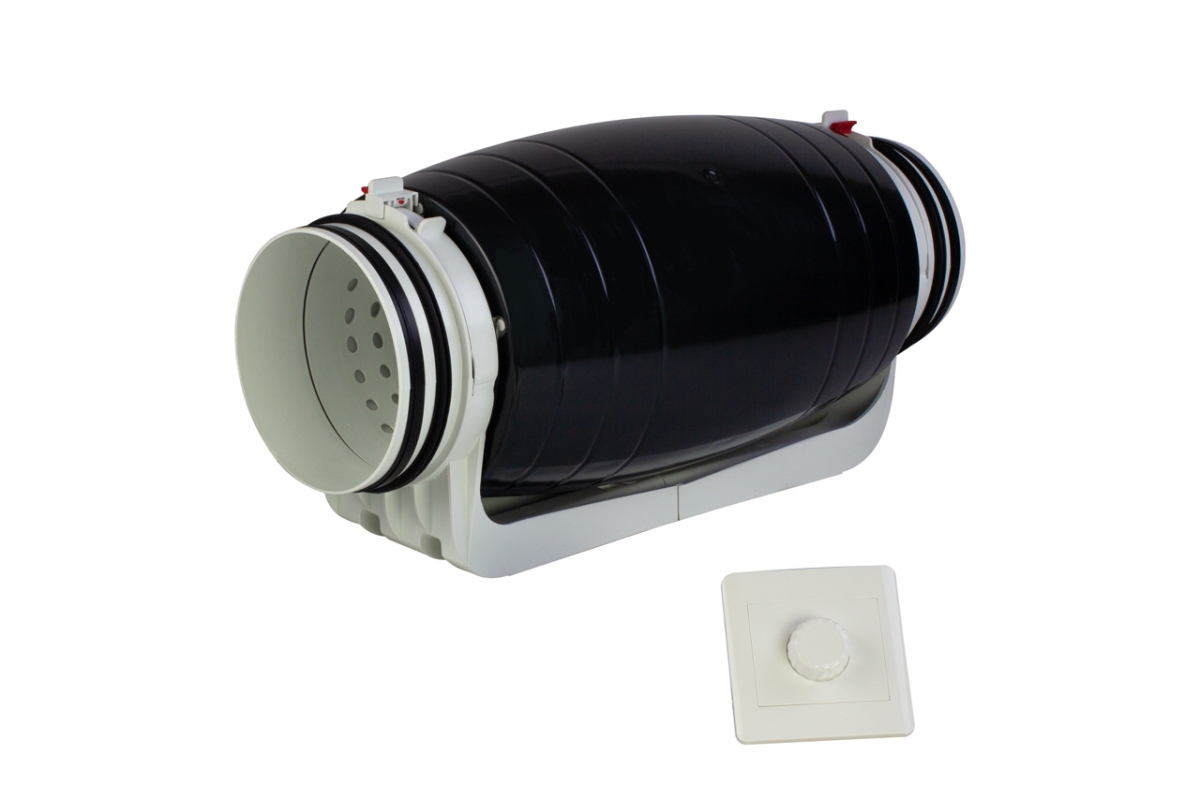 Все модели комплектуются встроенной системой регулирования, внешней клеммной коробкой и элегантным настенным потенциометром с сигналом 0-10 В, который позволяет плавно управлять двигателем вентилятора и устанавливать оптимальную скорость. Потенциометр скрытого исполнения, устанавливается в стандартный подрозетник. Длина проводов от вентилятора до клеммной коробки - 0.4 метра, от клеммной коробки до потенциометра - 5 метров. Потенциометр соединяется с проводом при помощи штекерного разъема.