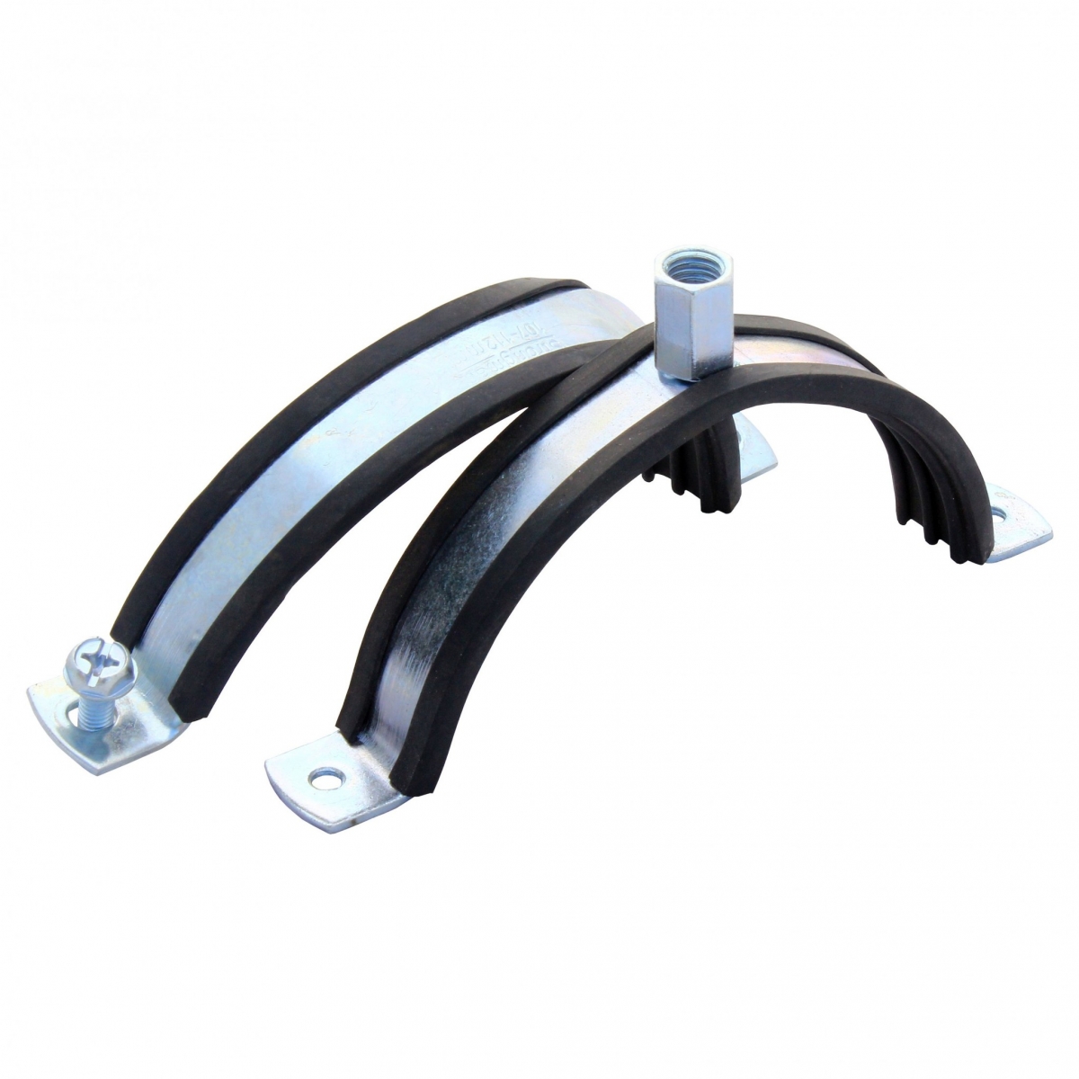 Хомуты для крепления с резиновым профилем применяются как для крепления круглых воздуховодов к строительным конструкциям, так и для крепления пластиковых и металлических труб, подвеса кабелей, шлангов или жгутов. Хомуты с резиновым профилем используются при монтаже воздуховодов в самом разном исполнении: крепятся на стены в вертикальном и горизонтальном вариантах, на пол, к потолку. Монтажная вариативность в данном случае так же может быть отнесена к достоинствам этого изделия.