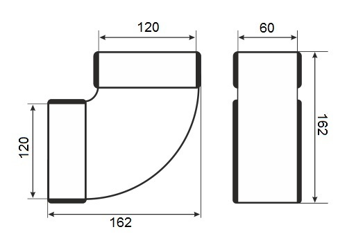 Колена плоские горизонтальные 90 градусов. Монтируются с плоскими воздуховодами.