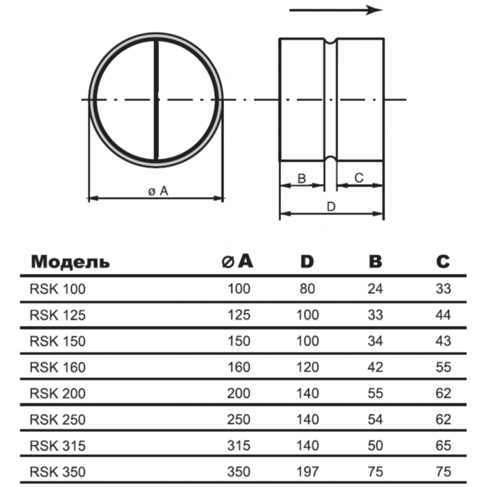 Обратный клапан для круглых каналов Airone RSK 100