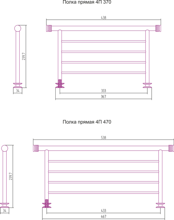 Полка прямая 4П 370 мм для полотенцесушителя Сунержа