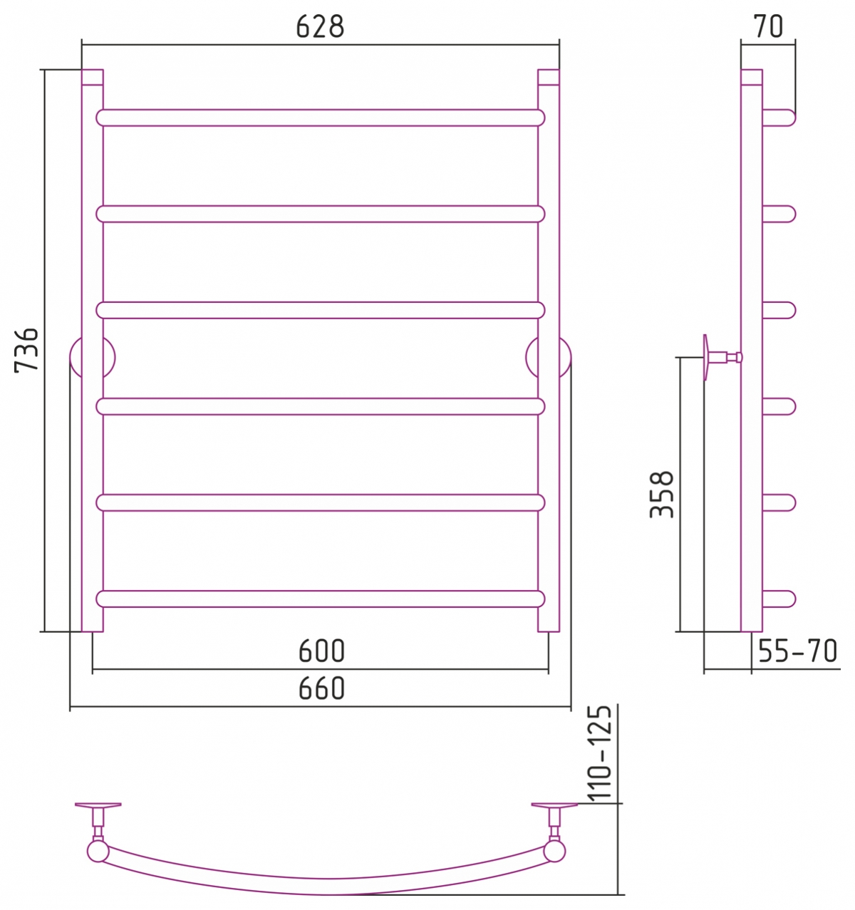Полотенцесушитель водяной Стилье Универсал-50 800x600