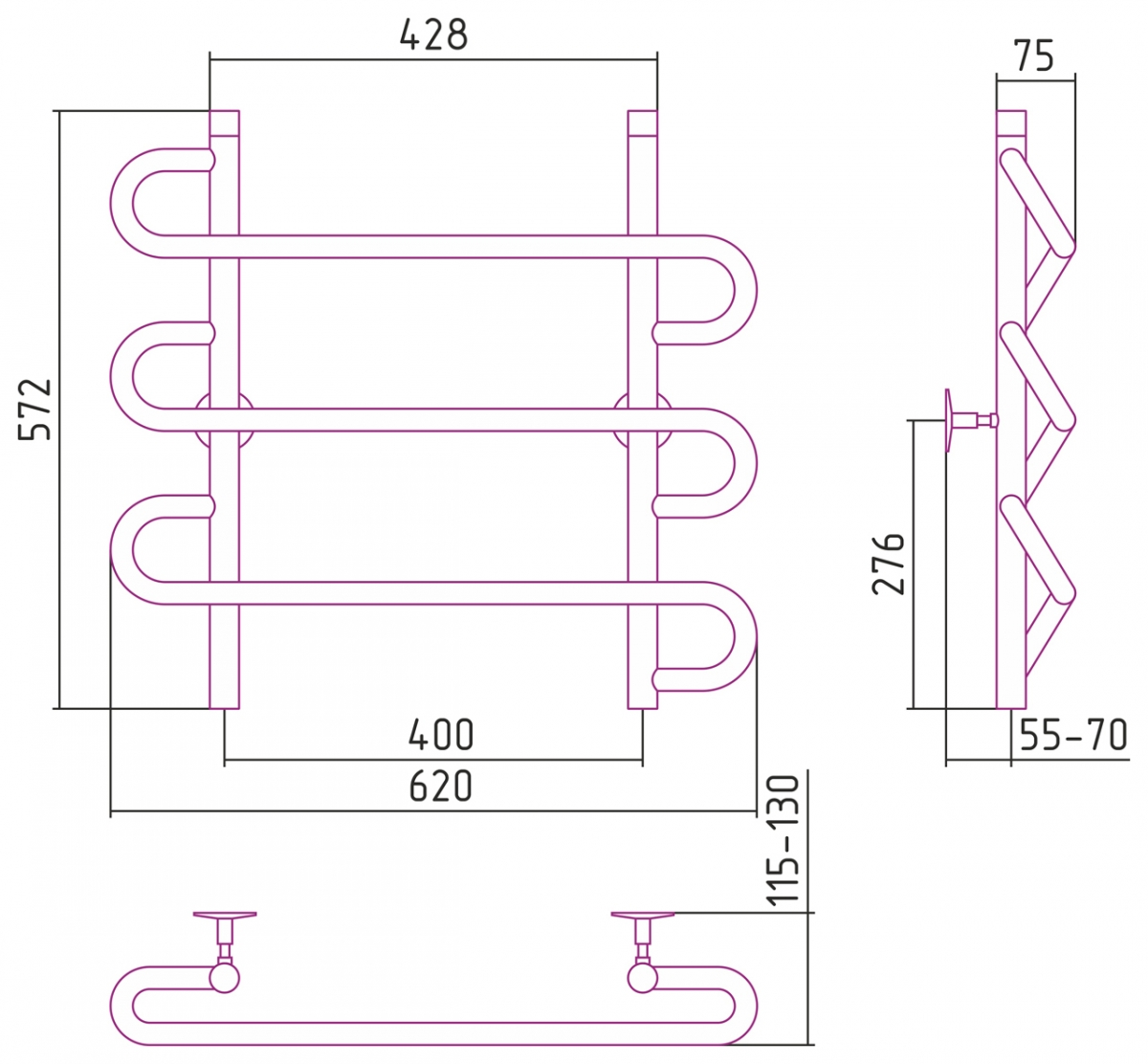 Полотенцесушитель водяной Стилье Универсал-52 600x600