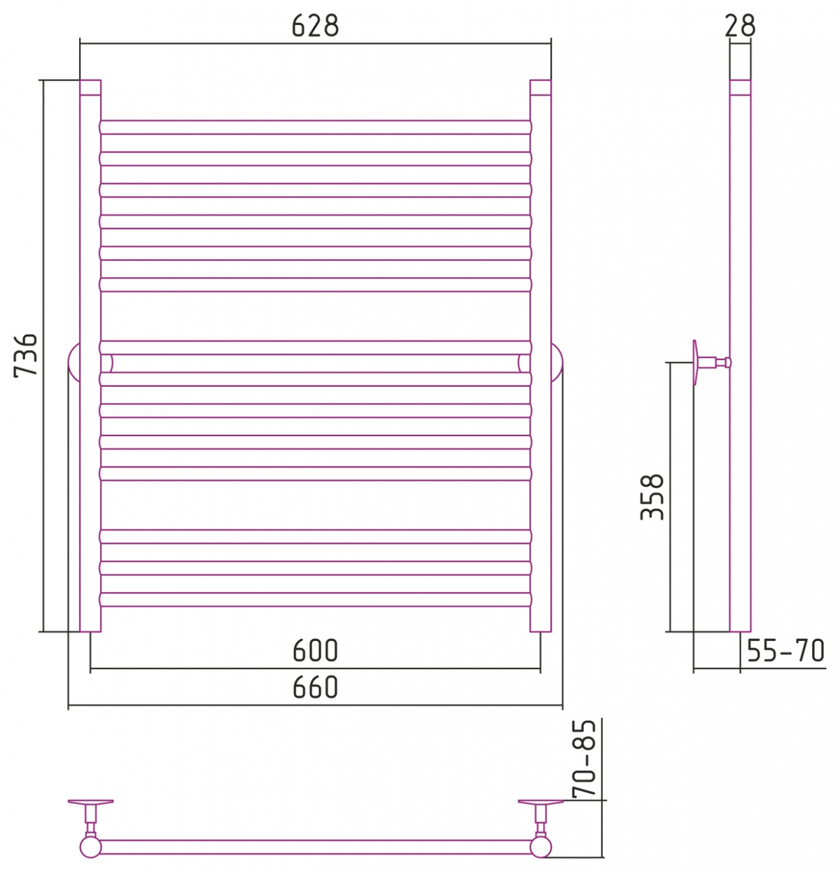 Полотенцесушитель водяной Стилье Универсал-53 800x600