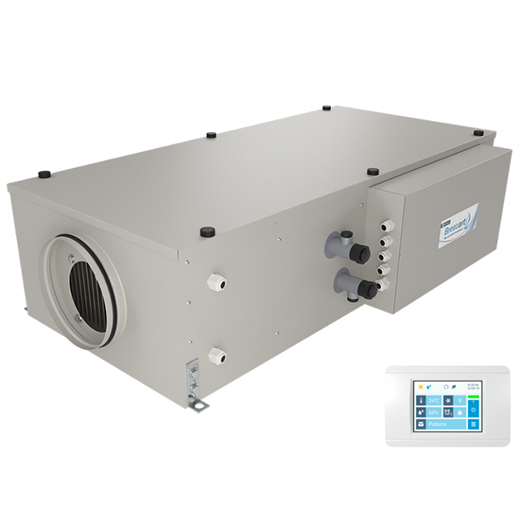 ОписаниеПриточная установка с фреоновым охлаждением, водяным нагревателем и смесительным узлом с 2-х или 3-х ходовым клапаном (узел подбирается исходя из типа водоснабжения), комплектуется воздушными клапаном с электроприводом (с возвратной пружиной), системой цифровой автоматики JetLogic с цветным сенсорным пультом управления и всеми необходимыми датчиками. Автоматика может управлять различными типами ККБ. Вентилятор Ebmpapst серии ЕС (производен в Германии).