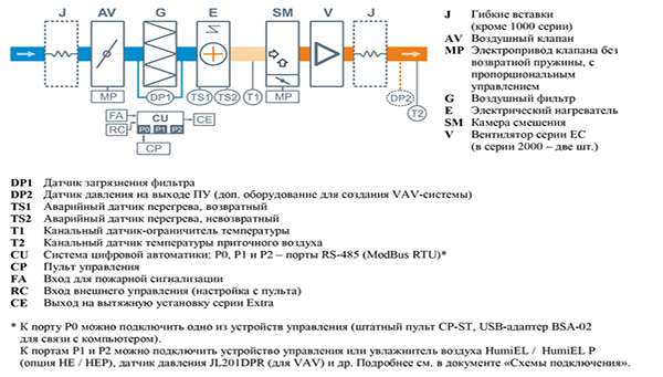 - Возможность управления увлажнителем воздуха с пульта вентустановки.