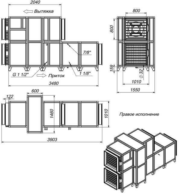 • В комплекте с воздушными клапанами с электроприводом (с возвратной пружиной), системой цифровой автоматики JetLogic с цветным сенсорным пультом управления и всеми необходимыми датчиками.