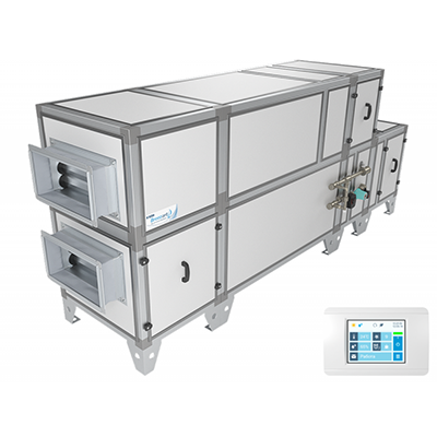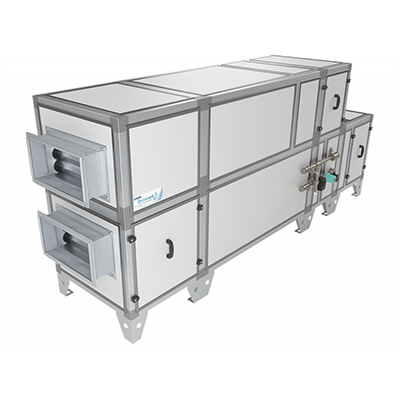 • Приточно-вытяжная установка напольного типа с противоточным пластинчатым рекуператором, системой защиты от замерзания.
