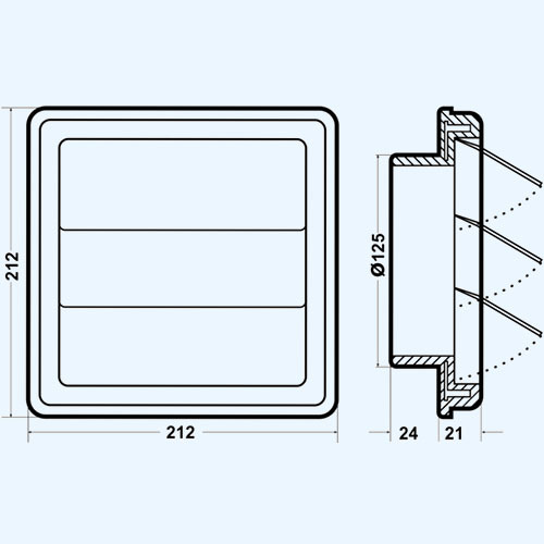 Решетка 150х150 D 125 с гравитационными жалюзи (1515К125Ф)