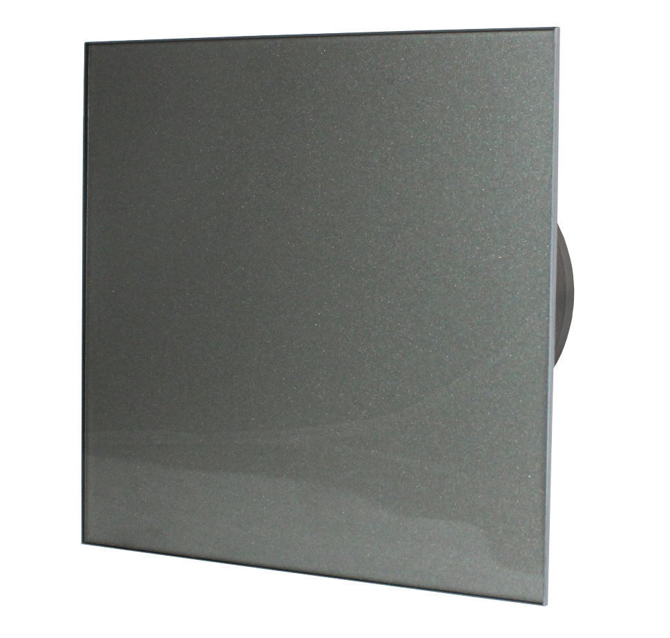 Дизайнерский бесшумный вентилятор темно серое стекло, с датчиком влажности. Включается при влажности более 70%.