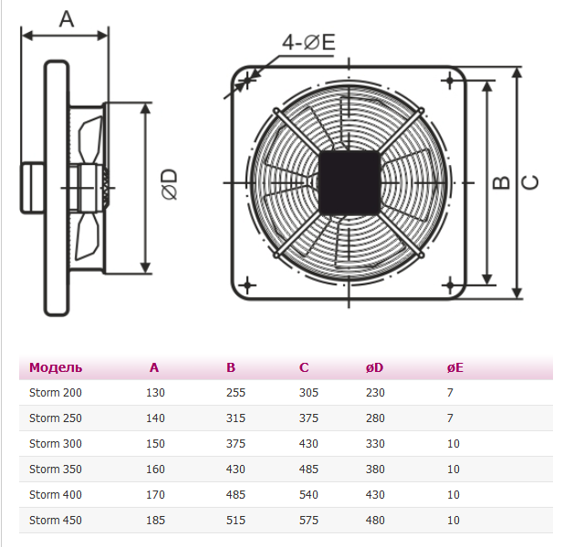 Осевой вентилятор STORM обладает низким уровнем давления.