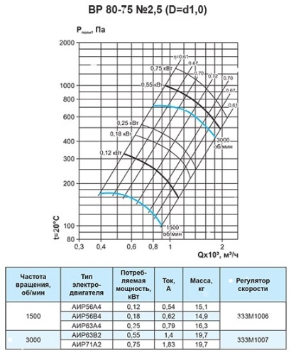 Вентилятор радиальный ВР 80-75 №2,5 (0,18кВт/1500об) Низкого давления